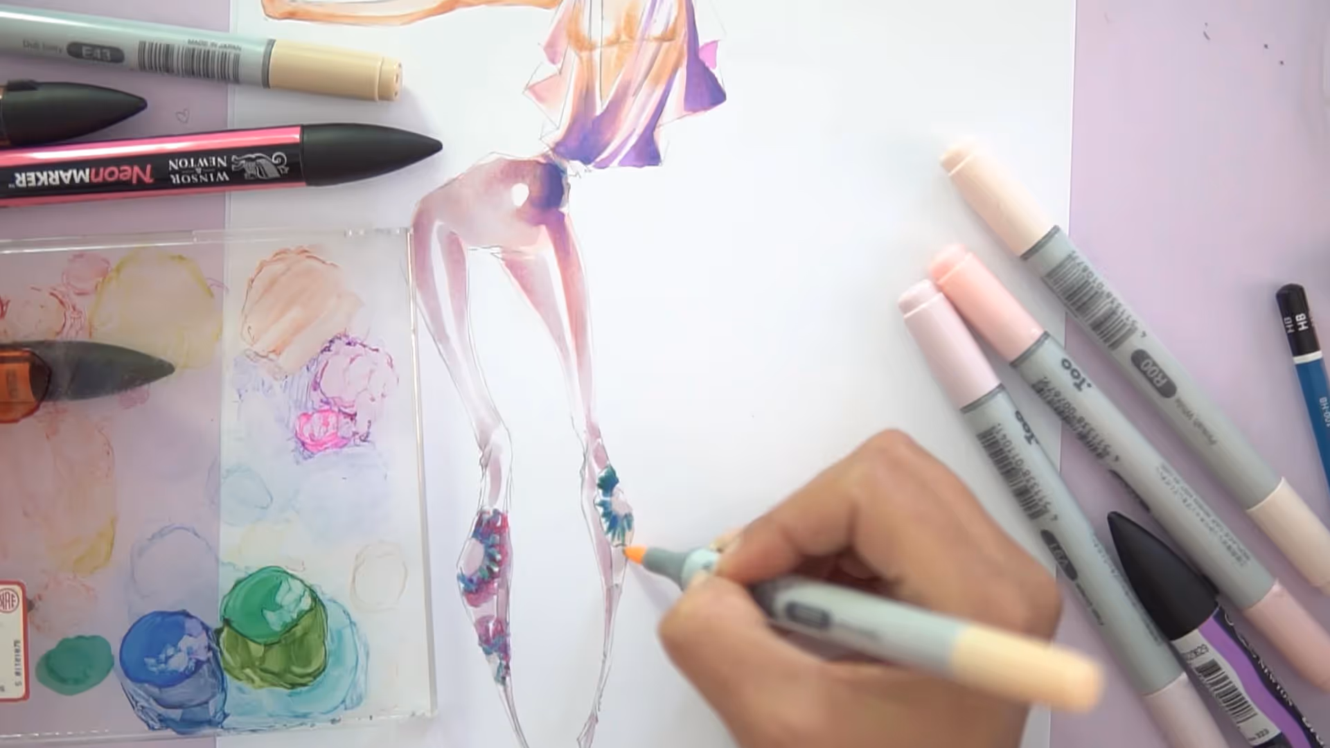 Acquerellare le gambe del figurino