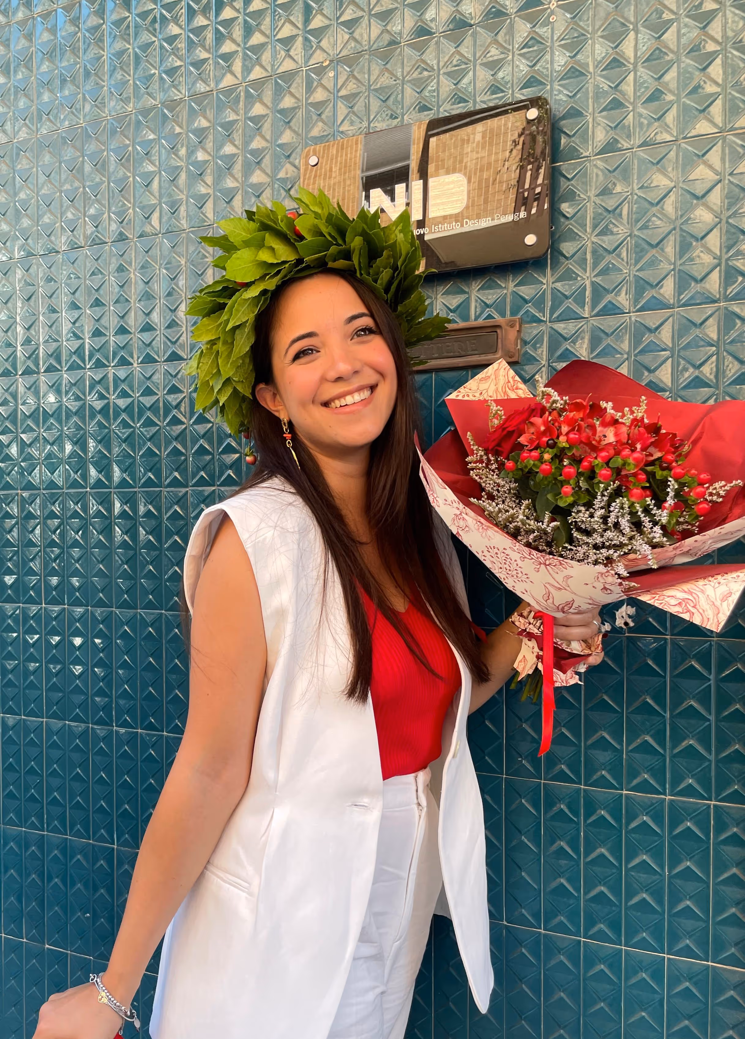 Emirjona Gjeka (35 anni, Perugina d’adozione) è Fashion Designer e Modellista, ex studentessa del corso di Moda & Fashion Design del NID (diplomata nel 2012). Durante il triennio ha realizzato capi e servizi fotografici, e la sua carriera l'ha vista in aziende come Studio Roscini, Lunatic Italia e Lorena Antoniazzi. Dal 2021, è impiegata nell’ufficio modelli di Brunello Cucinelli. Dalla sua esperienza NID, trae la versatilità, l'attitudine al lavoro di gruppo e l’umiltà nel chiedere.